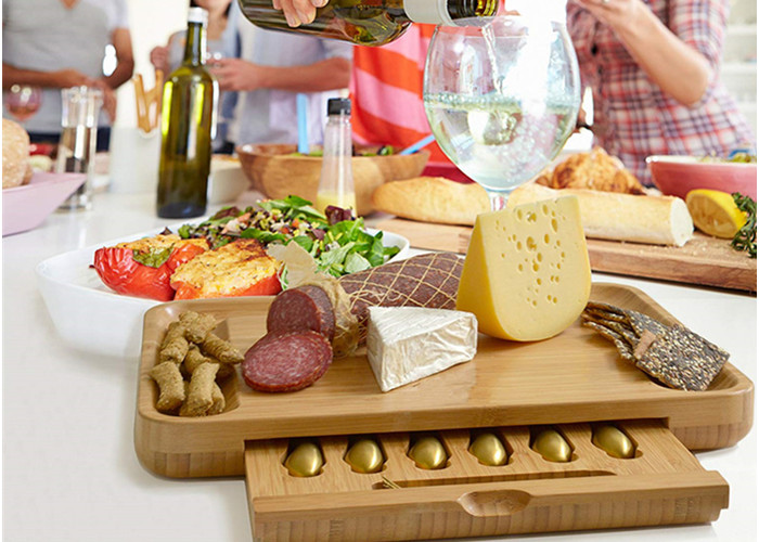 Large 100% Bamboo Board & 6 Stainless Steel Cheese Knives & 6 appetizer forks Bamboo Cheese Board